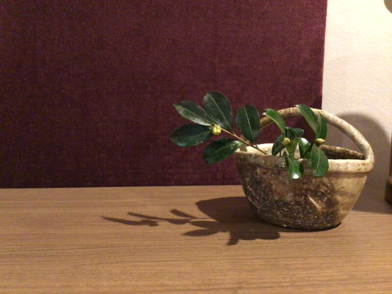 今朝のお客様は、サザンカをお土産に持って来てくださった。